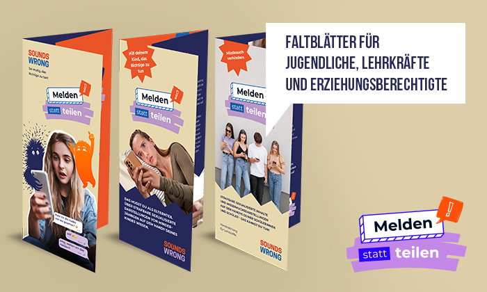 Die Polizei hat im Rahmen der Kampagne gegen die Verbreitung von Missbrauchsdarstellungen "Sounds Wrong" drei Flyer erstellt, die unterschiedliche Zielgruppen über den richtigen Umgang mit sexualisiertem Bild und Videomaterial aufklärt.