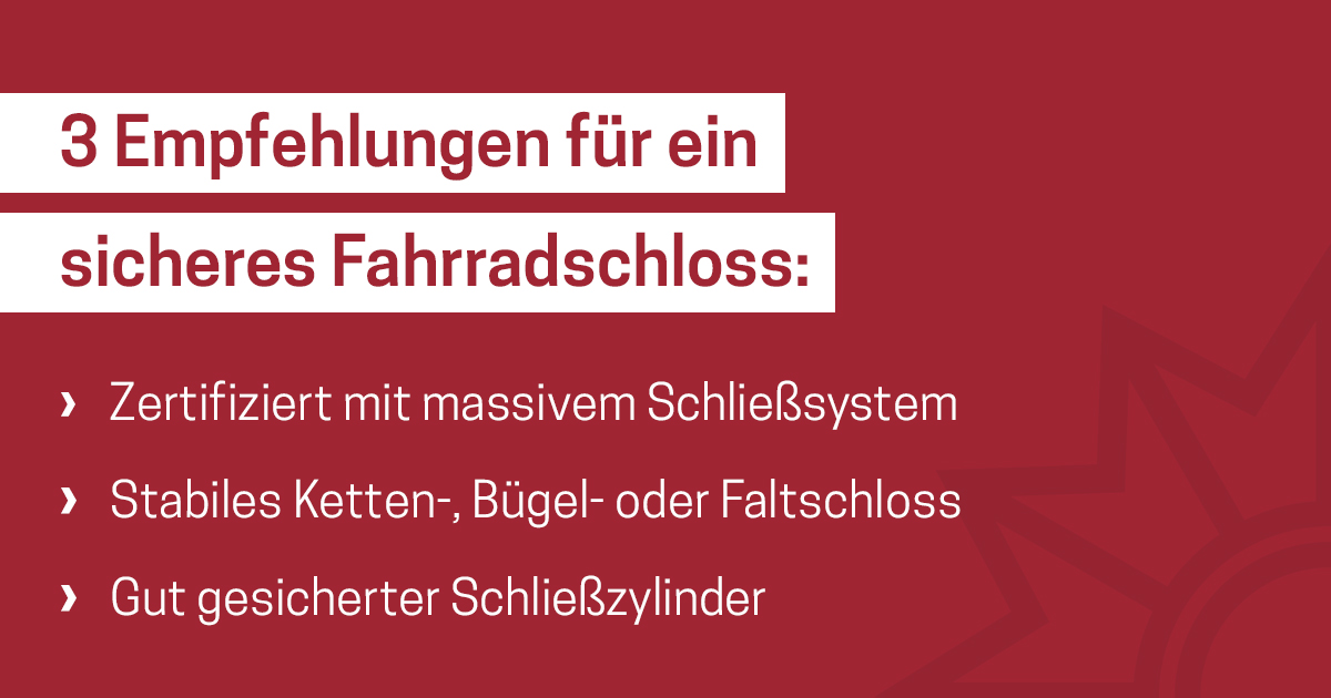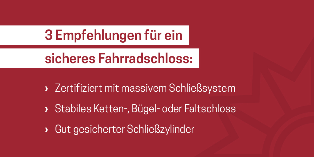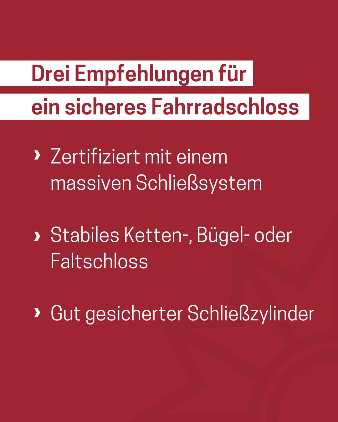 Das Medienpaket „3 Empfehlungen für ein sicheres Fahrradschloss“ ist eine thematische Zusammenstellung aus Bild- und/ oder Textpostings für die Social Media Kanäle Facebook, Instagram und X. Wir stellen Ihnen die Beiträge zur freien Verfügung bereit. Nutzen Sie diese selbst oder leiten Sie die Postings an Ihre zuständige Social Media Stelle weiter. Wie und ob Sie die Beiträge veröffentlichen, können Sie individuell entscheiden. Texte und Hashtags können Sie frei nutzen und für Ihre Anforderungen anpassen.