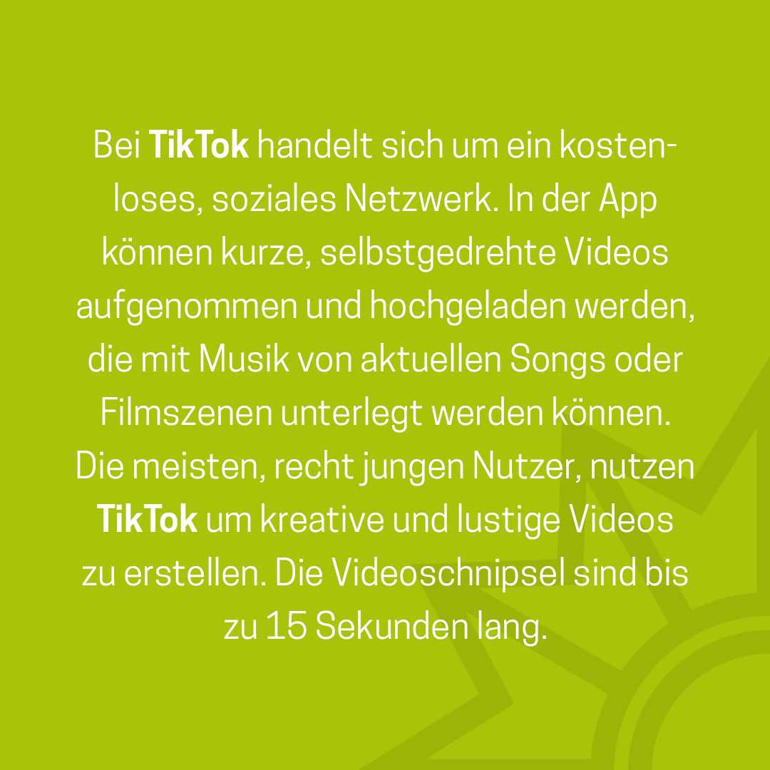 Das Medienpaket „Was ist eigentlich TikTok?“ ist eine thematische Zusammenstellung aus Bild- und/ oder Textpostings für die Social Media Kanäle Facebook, Instagram und X. Wir stellen Ihnen die Beiträge zur freien Verfügung bereit. Nutzen Sie diese selbst oder leiten Sie die Postings an Ihre zuständige Social Media Stelle weiter. Wie und ob Sie die Beiträge veröffentlichen, können Sie individuell entscheiden. Texte und Hashtags können Sie frei nutzen und für Ihre Anforderungen anpassen.
