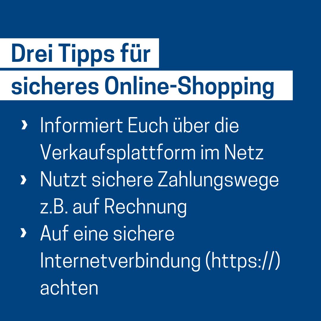 Das Medienpaket „3 Tipps für sicheres Onlineshopping“ ist eine thematische Zusammenstellung aus Bild- und/ oder Textpostings für die Social Media Kanäle Facebook, Instagram und X. Wir stellen Ihnen die Beiträge zur freien Verfügung bereit. Nutzen Sie diese selbst oder leiten Sie die Postings an Ihre zuständige Social Media Stelle weiter. Wie und ob Sie die Beiträge veröffentlichen, können Sie individuell entscheiden. Texte und Hashtags können Sie frei nutzen und für Ihre Anforderungen anpassen.
