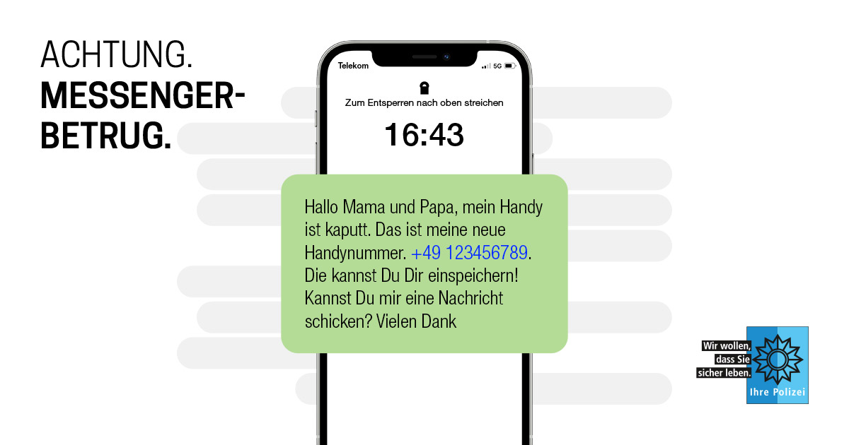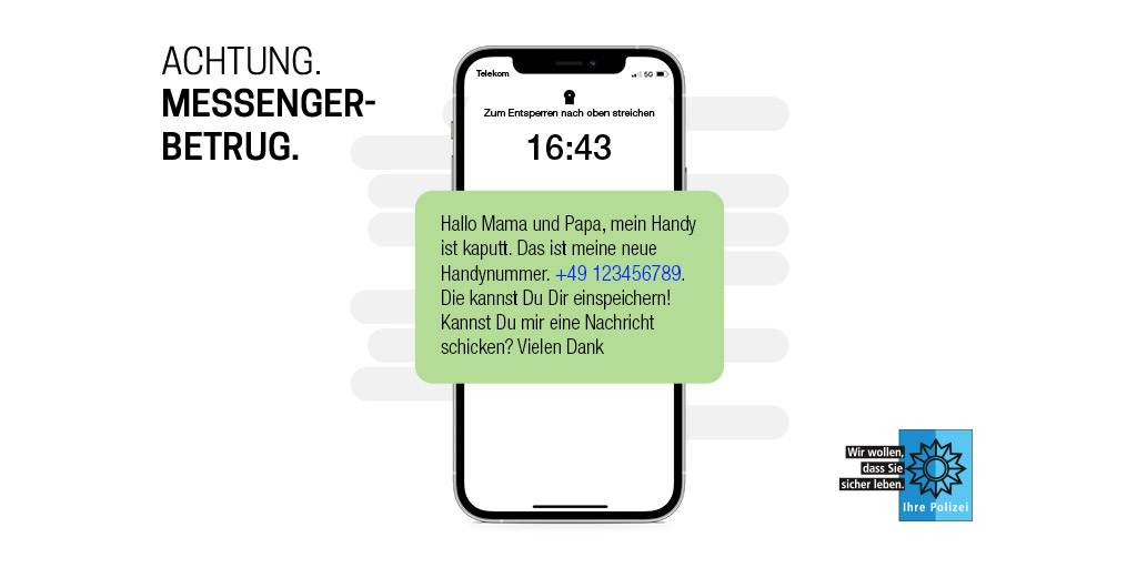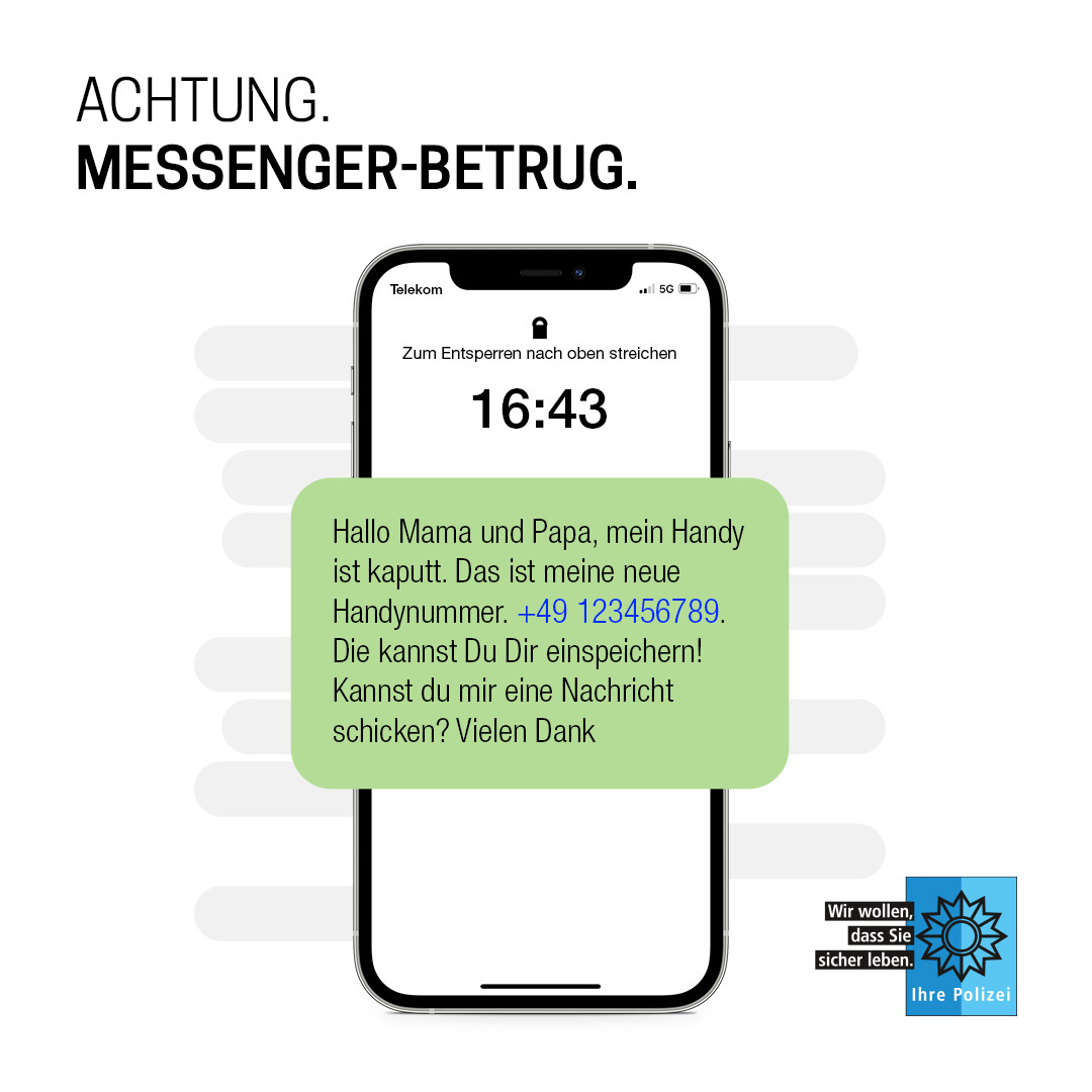 Das Medienpaket „Messenger: Nachfragen schützt vor Betrug“ ist eine thematische Zusammenstellung aus Bild- und/ oder Textpostings für die Social Media Kanäle Facebook, Instagram und X. Wir stellen Ihnen die Beiträge zur freien Verfügung bereit. Nutzen Sie diese selbst oder leiten Sie die Postings an Ihre zuständige Social Media Stelle weiter. Wie und ob Sie die Beiträge veröffentlichen, können Sie individuell entscheiden. Texte und Hashtags können Sie frei nutzen und für Ihre Anforderungen anpassen.