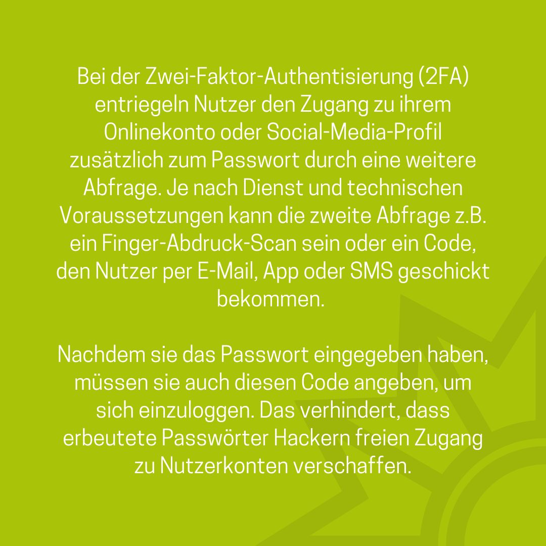 Das Medienpaket „Zwei-Faktor-Authentisierung: Was ist das eigentlich?“ ist eine thematische Zusammenstellung aus Bild- und/ oder Textpostings für die Social Media Kanäle Facebook, Instagram und X. Wir stellen Ihnen die Beiträge zur freien Verfügung bereit. Nutzen Sie diese selbst oder leiten Sie die Postings an Ihre zuständige Social Media Stelle weiter. Wie und ob Sie die Beiträge veröffentlichen, können Sie individuell entscheiden. Texte und Hashtags können Sie frei nutzen und für Ihre Anforderungen anpassen.