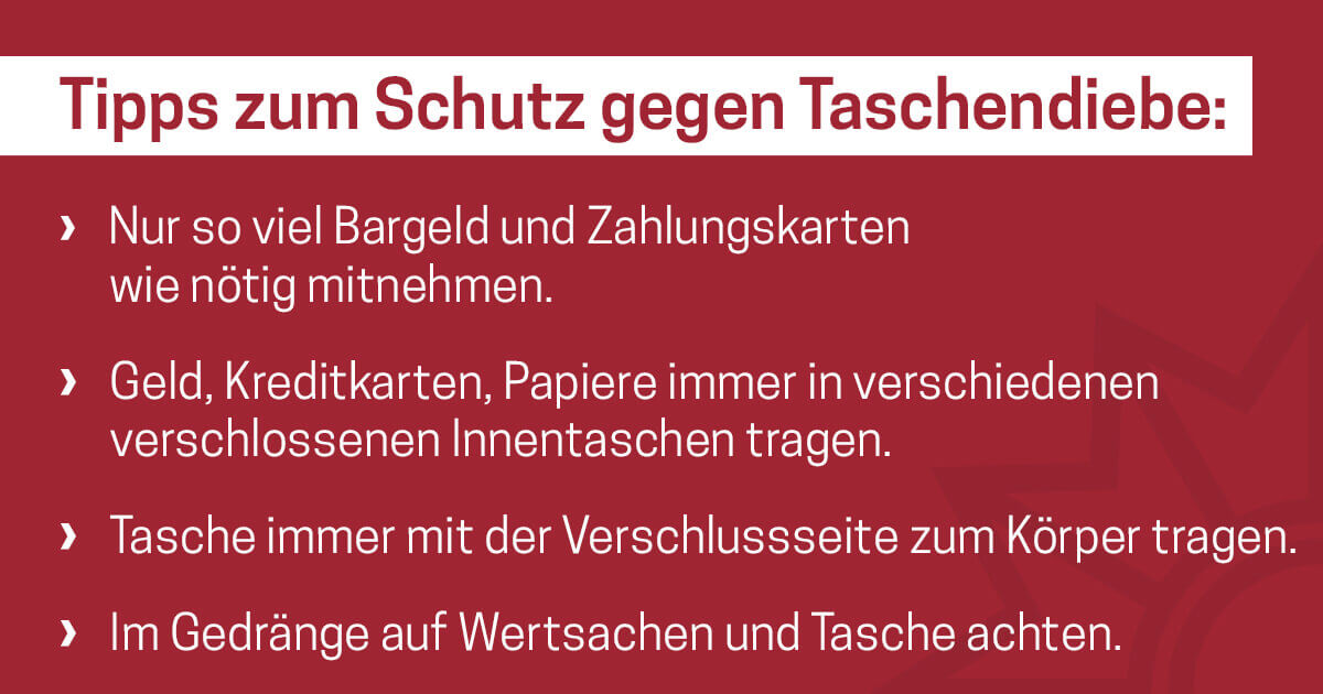 Themen : Diebstahl , Taschendiebstahl , Trickdiebstahl