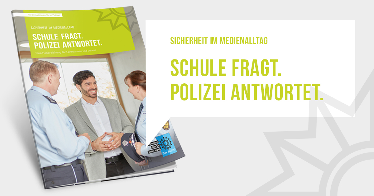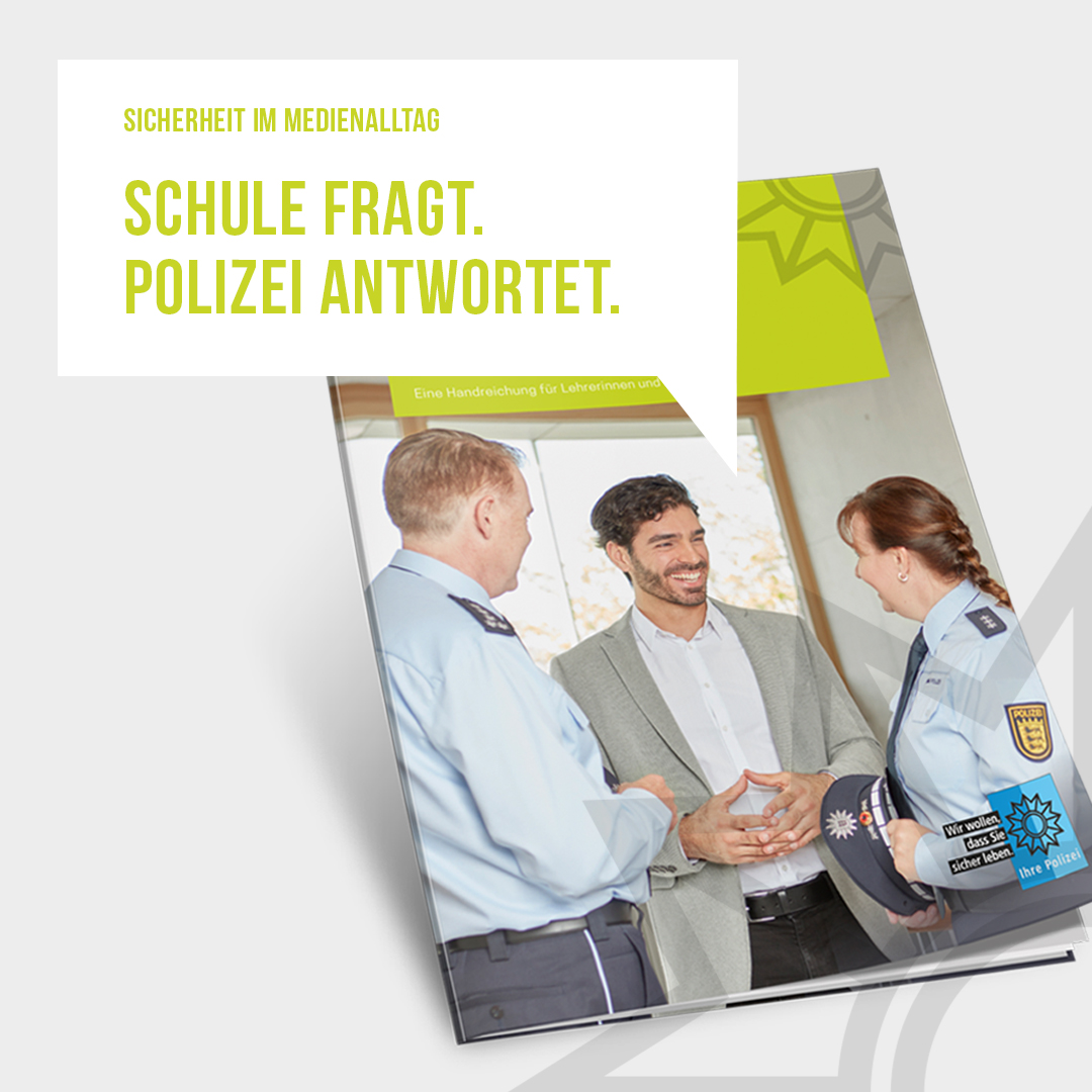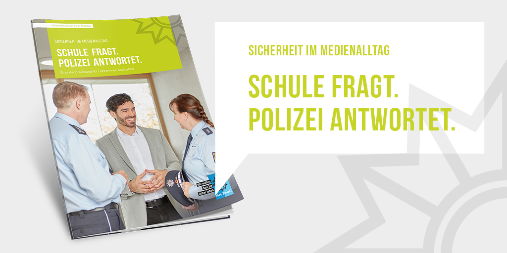 Das Medienpaket „Bewerbung Handreichung Schule fragt. Polizei antwortet.“ ist eine thematische Zusammenstellung aus Bild- und/ oder Textpostings für die Social Media Kanäle Facebook, Instagram und X. Wir stellen Ihnen die Beiträge zur freien Verfügung bereit. Nutzen Sie diese selbst oder leiten Sie die Postings an Ihre zuständige Social Media Stelle weiter. Wie und ob Sie die Beiträge veröffentlichen, können Sie individuell entscheiden. Texte und Hashtags können Sie frei nutzen und für Ihre Anforderungen anpassen.