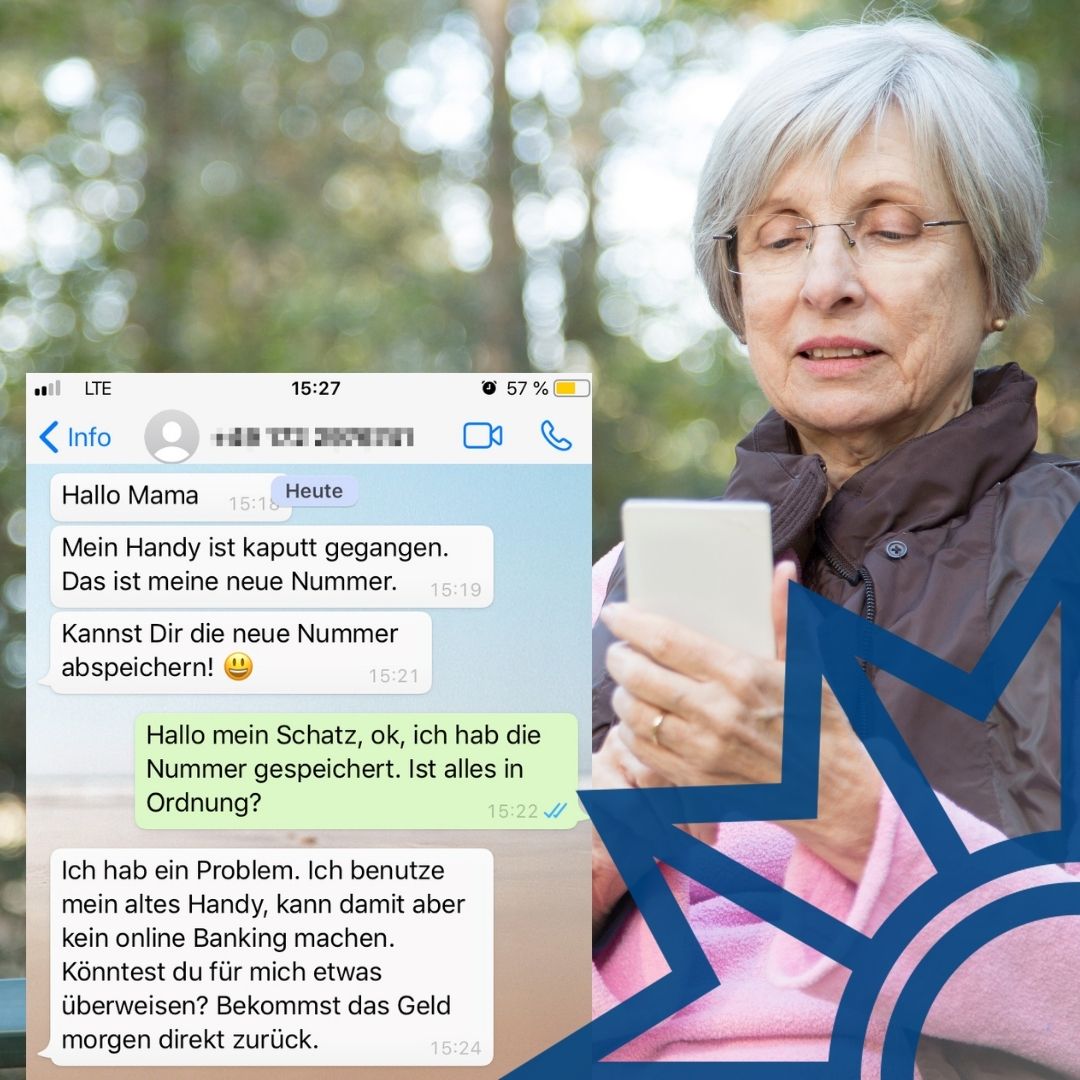 Das Medienpaket „Enkeltrick über WhatsApp“ ist eine thematische Zusammenstellung aus Bild- und/ oder Textpostings für die Social Media Kanäle Facebook, Instagram und X. Wir stellen Ihnen die Beiträge zur freien Verfügung bereit. Nutzen Sie diese selbst oder leiten Sie die Postings an Ihre zuständige Social Media Stelle weiter. Wie und ob Sie die Beiträge veröffentlichen, können Sie individuell entscheiden. Texte und Hashtags können Sie frei nutzen und für Ihre Anforderungen anpassen.