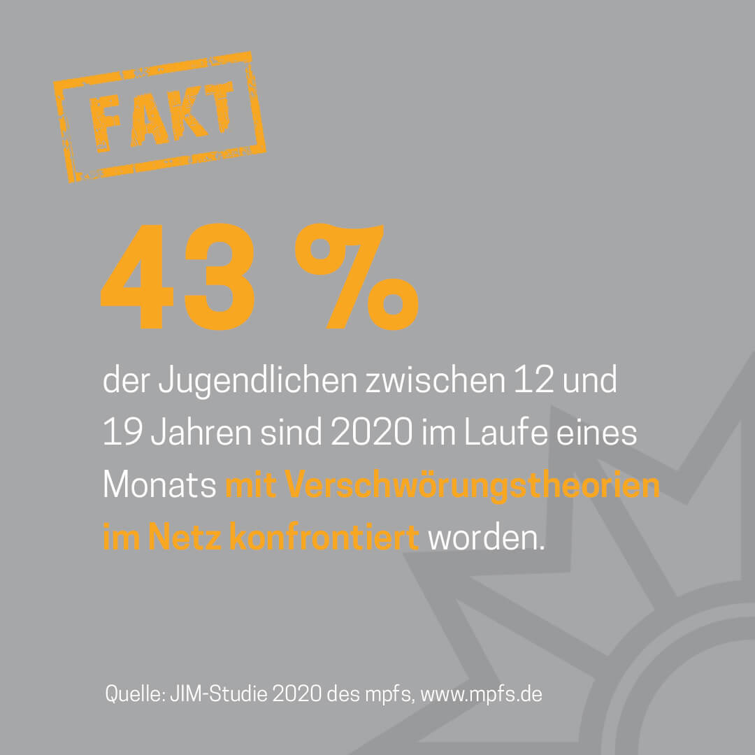Das Medienpaket „Verschwörungstheorien“ ist eine thematische Zusammenstellung aus Bild- und/ oder Textpostings für die Social Media Kanäle Facebook, Instagram und X. Wir stellen Ihnen die Beiträge zur freien Verfügung bereit. Nutzen Sie diese selbst oder leiten Sie die Postings an Ihre zuständige Social Media Stelle weiter. Wie und ob Sie die Beiträge veröffentlichen, können Sie individuell entscheiden. Texte und Hashtags können Sie frei nutzen und für Ihre Anforderungen anpassen.
