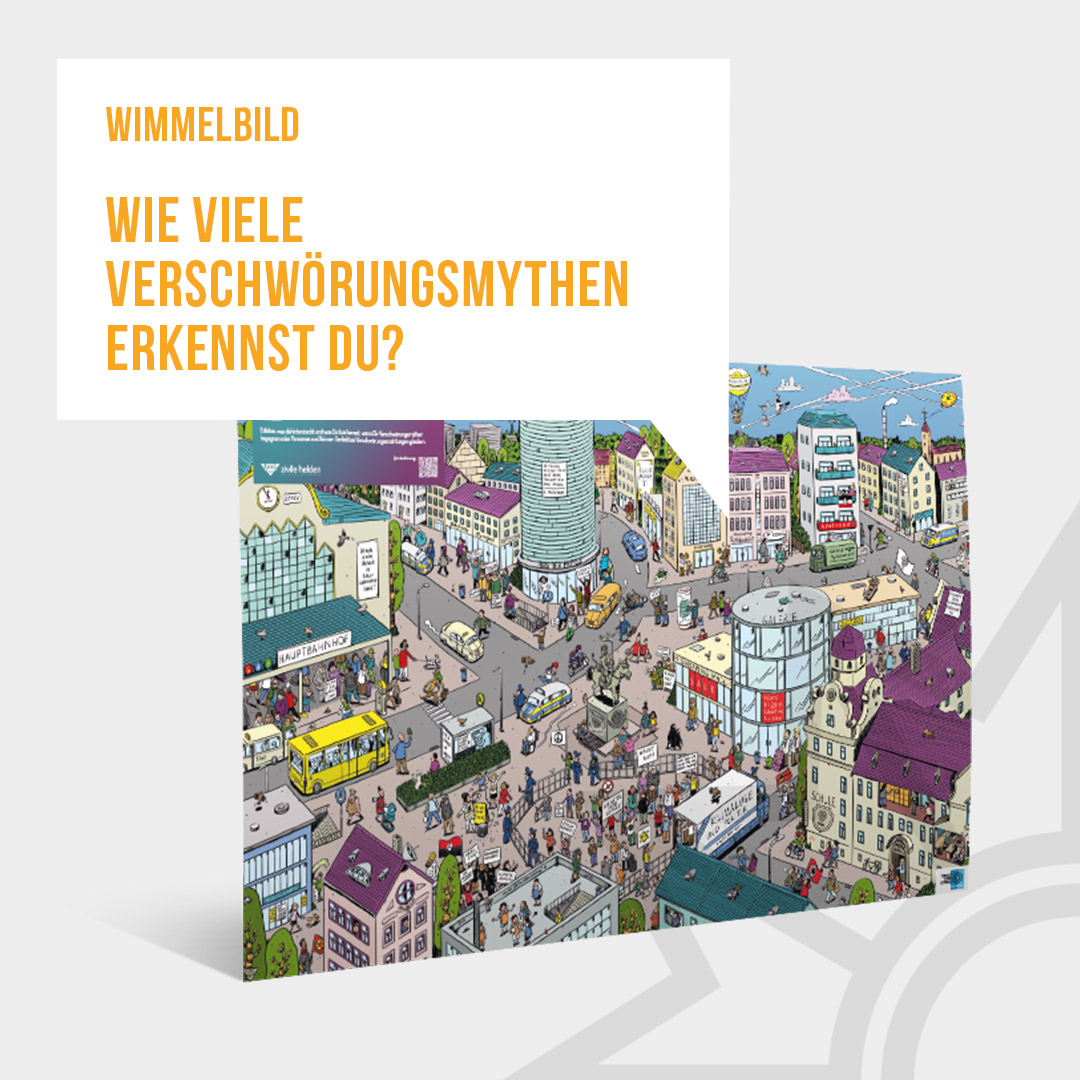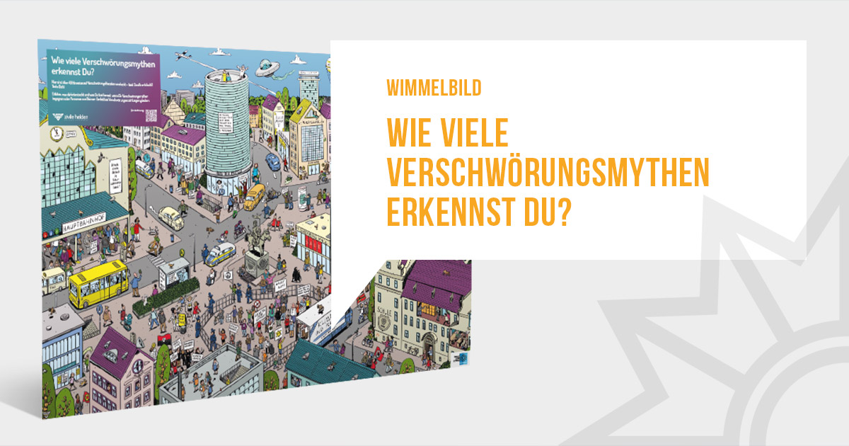 Das Medienpaket „Wie viele Verschwörungsmythen erkennst Du?“ ist eine thematische Zusammenstellung aus Bild- und/ oder Textpostings für die Social Media Kanäle Facebook, Instagram und X. Wir stellen Ihnen die Beiträge zur freien Verfügung bereit. Nutzen Sie diese selbst oder leiten Sie die Postings an Ihre zuständige Social Media Stelle weiter. Wie und ob Sie die Beiträge veröffentlichen, können Sie individuell entscheiden. Texte und Hashtags können Sie frei nutzen und für Ihre Anforderungen anpassen.