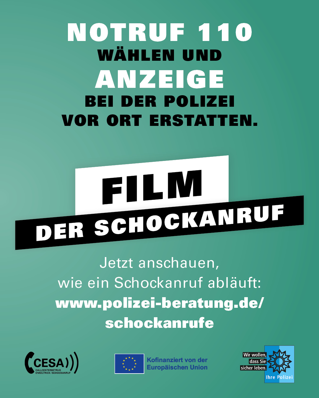 Das Medienpaket Tatort Telefon: Schockanrufe bei Senioren ist eine thematische Zusammenstellung aus Bild- und/ oder Textpostings für die Social Media Kanäle Facebook, Instagram und X. Wir stellen Ihnen die Beiträge zur freien Verfügung bereit. Nutzen Sie diese selbst oder leiten Sie die Postings an Ihre zuständige Social Media Stelle weiter. Wie und ob Sie die Beiträge veröffentlichen, können Sie individuell entscheiden. Texte und Hashtags können Sie frei nutzen und für Ihre Anforderungen anpassen.