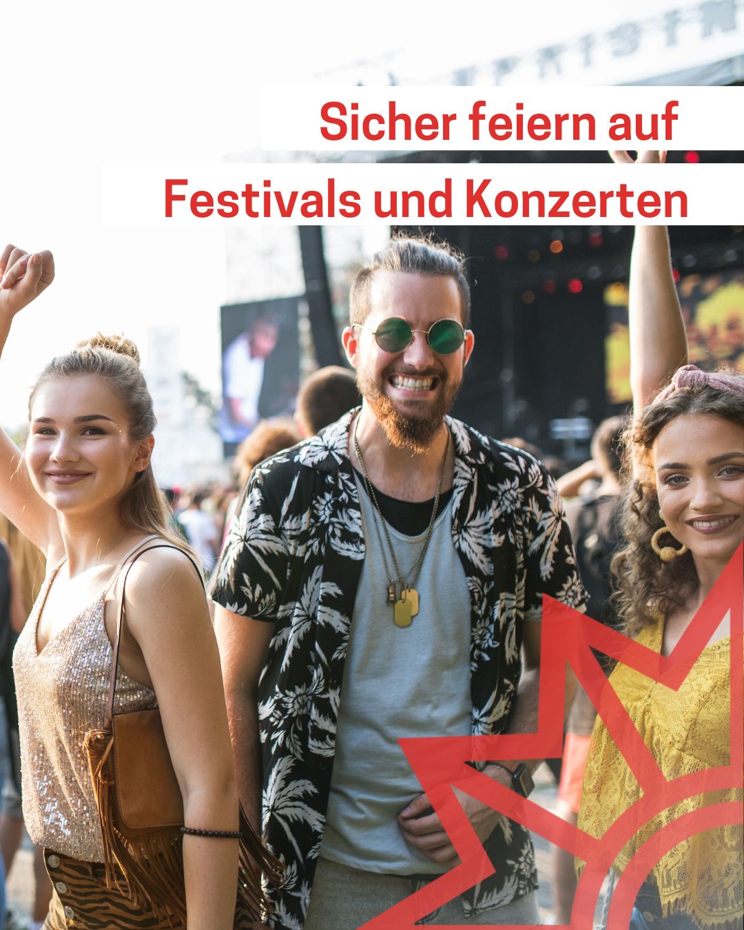 Das Medienpaket „Sicher feiern auf Festivals und Konzerten“ ist eine thematische Zusammenstellung aus Bild- und/ oder Textpostings für die Social Media Kanäle Facebook, Instagram und X. Wir stellen Ihnen die Beiträge zur freien Verfügung bereit. Nutzen Sie diese selbst oder leiten Sie die Postings an Ihre zuständige Social Media Stelle weiter. Wie und ob Sie die Beiträge veröffentlichen, können Sie individuell entscheiden. Texte und Hashtags können Sie frei nutzen und für Ihre Anforderungen anpassen.
