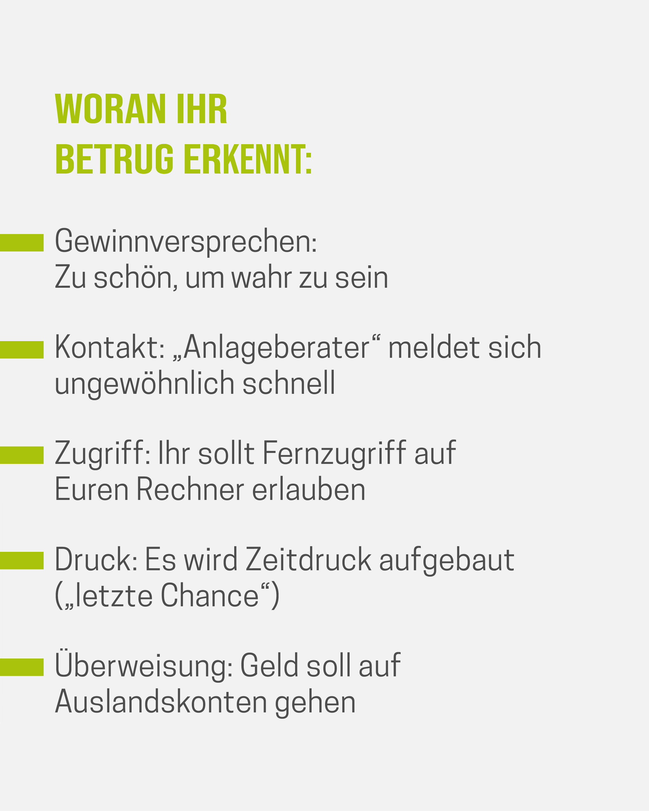 Cybertrading-Fraud Checkliste