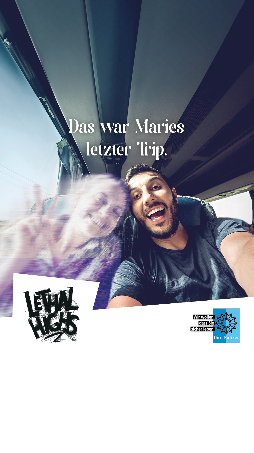 Das Medienpaket „Das war Maries letzter Trip“ ist eine thematische Zusammenstellung aus Bild- und/ oder Textpostings für die Social Media Kanäle Facebook, Instagram und X. Wir stellen Ihnen die Beiträge zur freien Verfügung bereit. Nutzen Sie diese selbst oder leiten Sie die Postings an Ihre zuständige Social Media Stelle weiter. Wie und ob Sie die Beiträge veröffentlichen, können Sie individuell entscheiden. Texte und Hashtags können Sie frei nutzen und für Ihre Anforderungen anpassen.