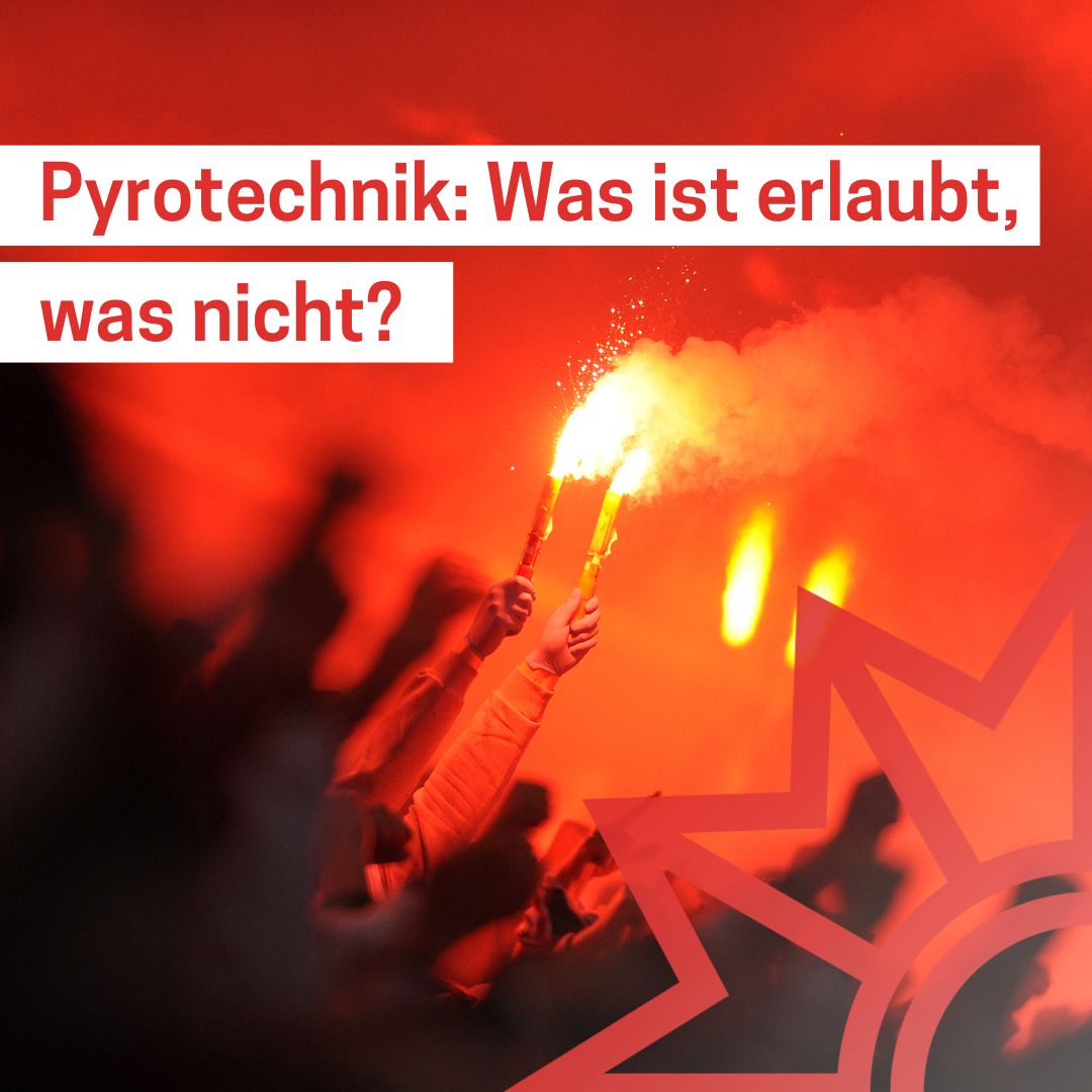 Das Medienpaket „Pyrotechnik im Stadion: Was ist erlaub?“ ist eine thematische Zusammenstellung aus Bild- und/ oder Textpostings für die Social Media Kanäle Facebook, Instagram und X. Wir stellen Ihnen die Beiträge zur freien Verfügung bereit. Nutzen Sie diese selbst oder leiten Sie die Postings an Ihre zuständige Social Media Stelle weiter. Wie und ob Sie die Beiträge veröffentlichen, können Sie individuell entscheiden. Texte und Hashtags können Sie frei nutzen und für Ihre Anforderungen anpassen.