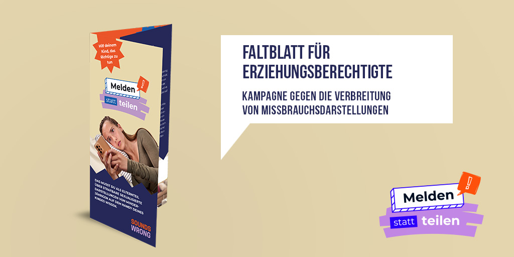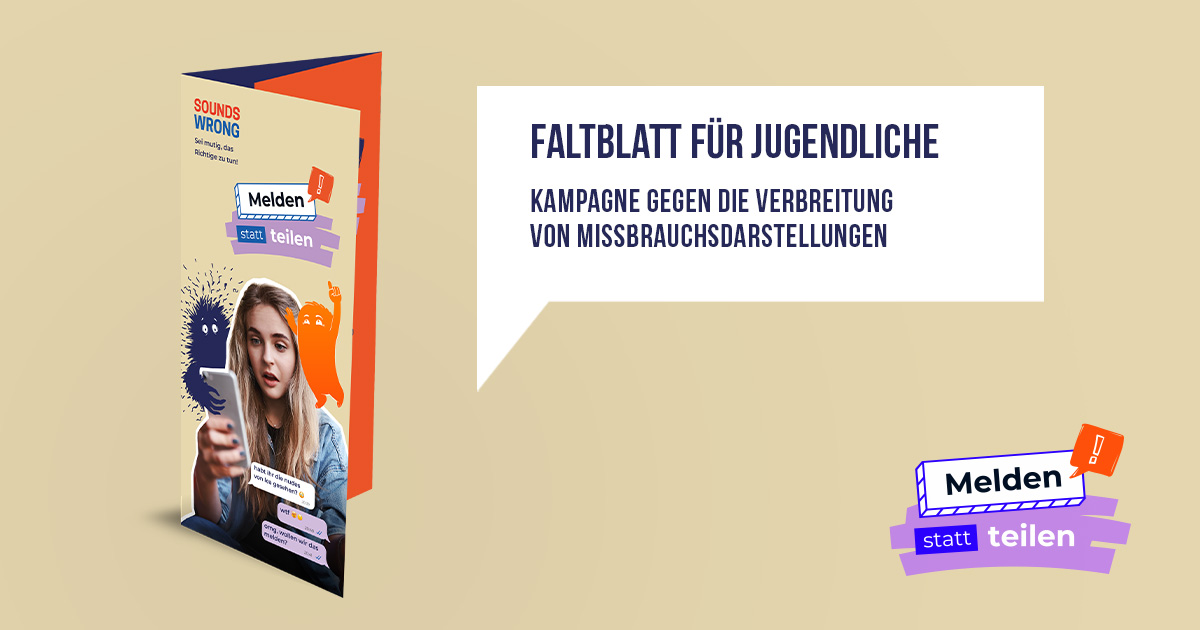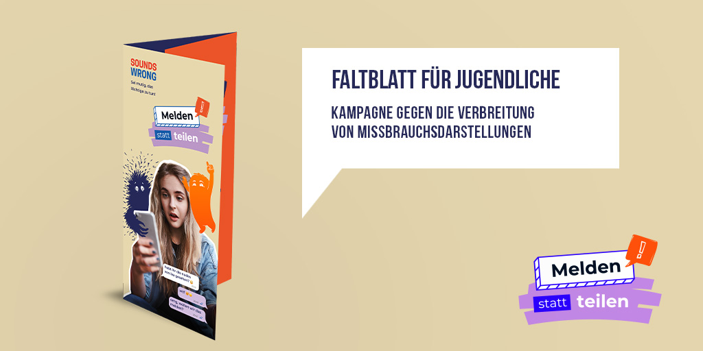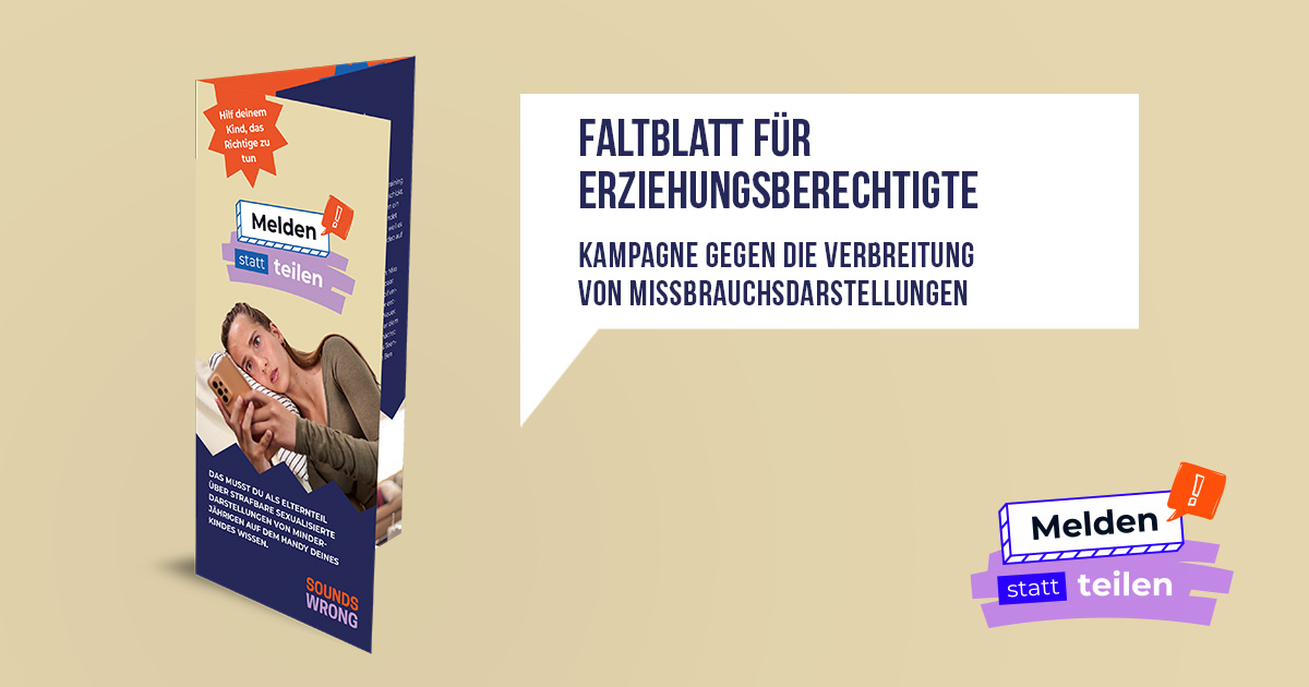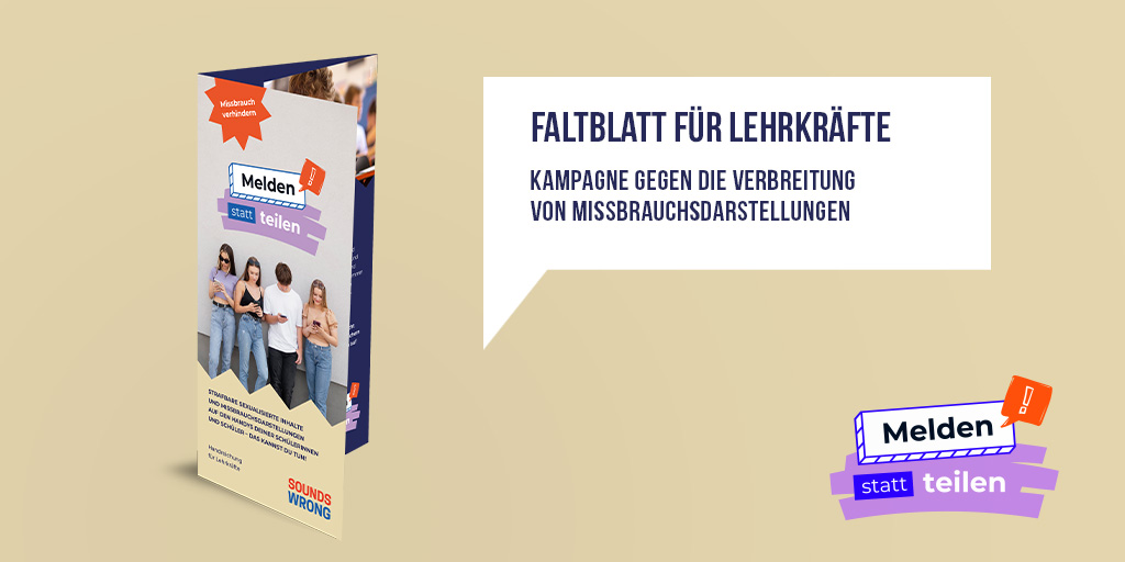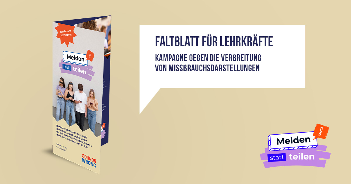 Bewerbung Faltblätter "Melden statt teilen" (für Schüler, Eltern, Lehrer)