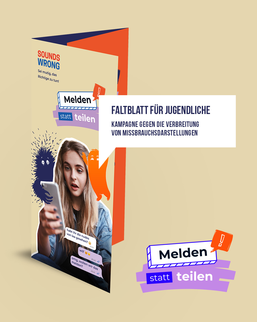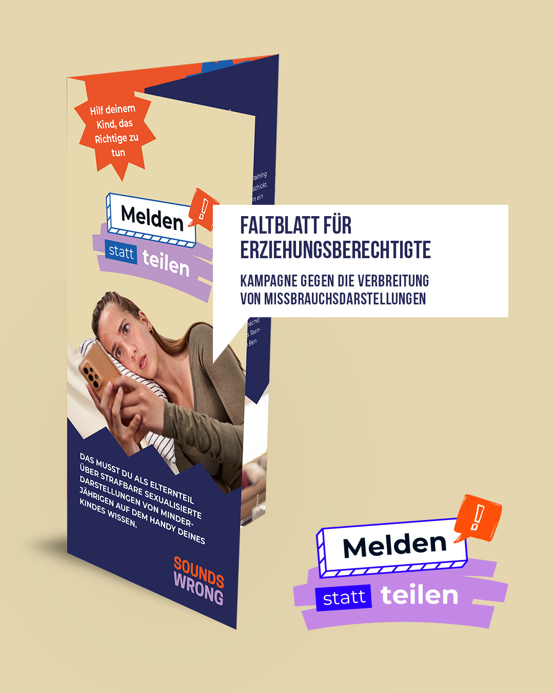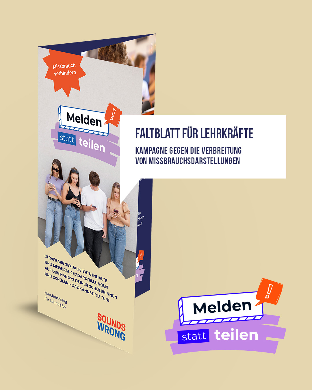 Bewerbung Faltblätter "Melden statt teilen" (für Schüler, Eltern, Lehrer)