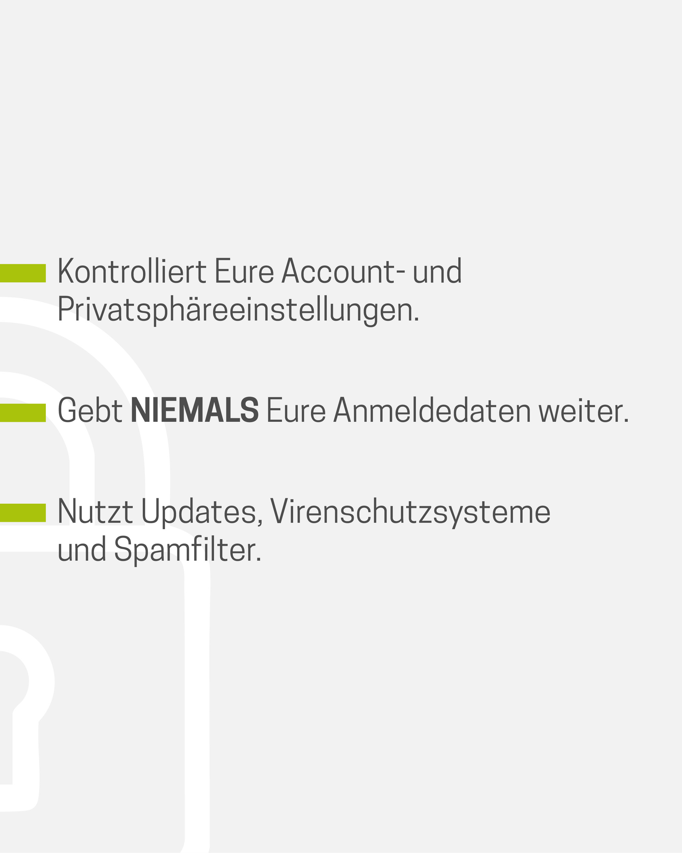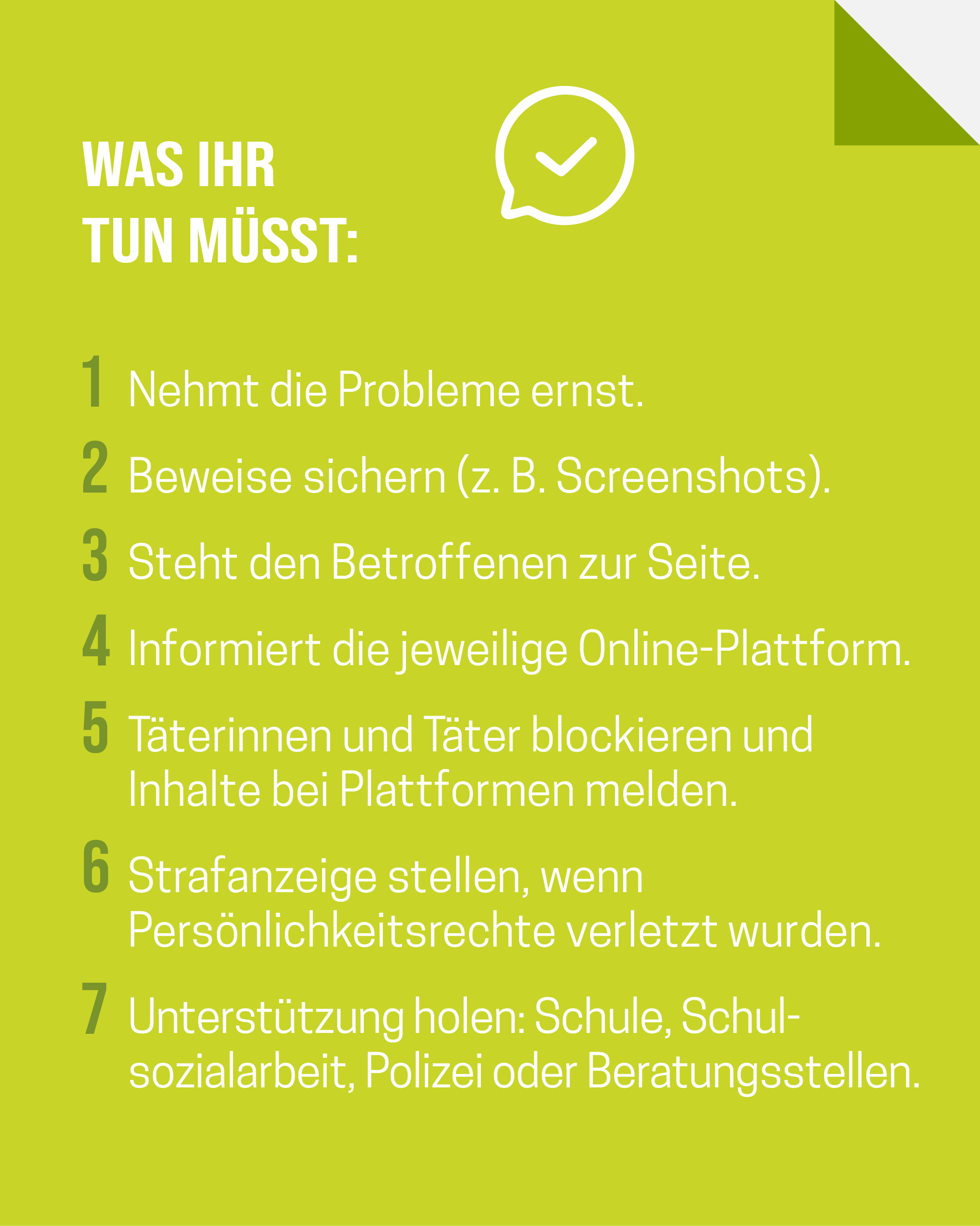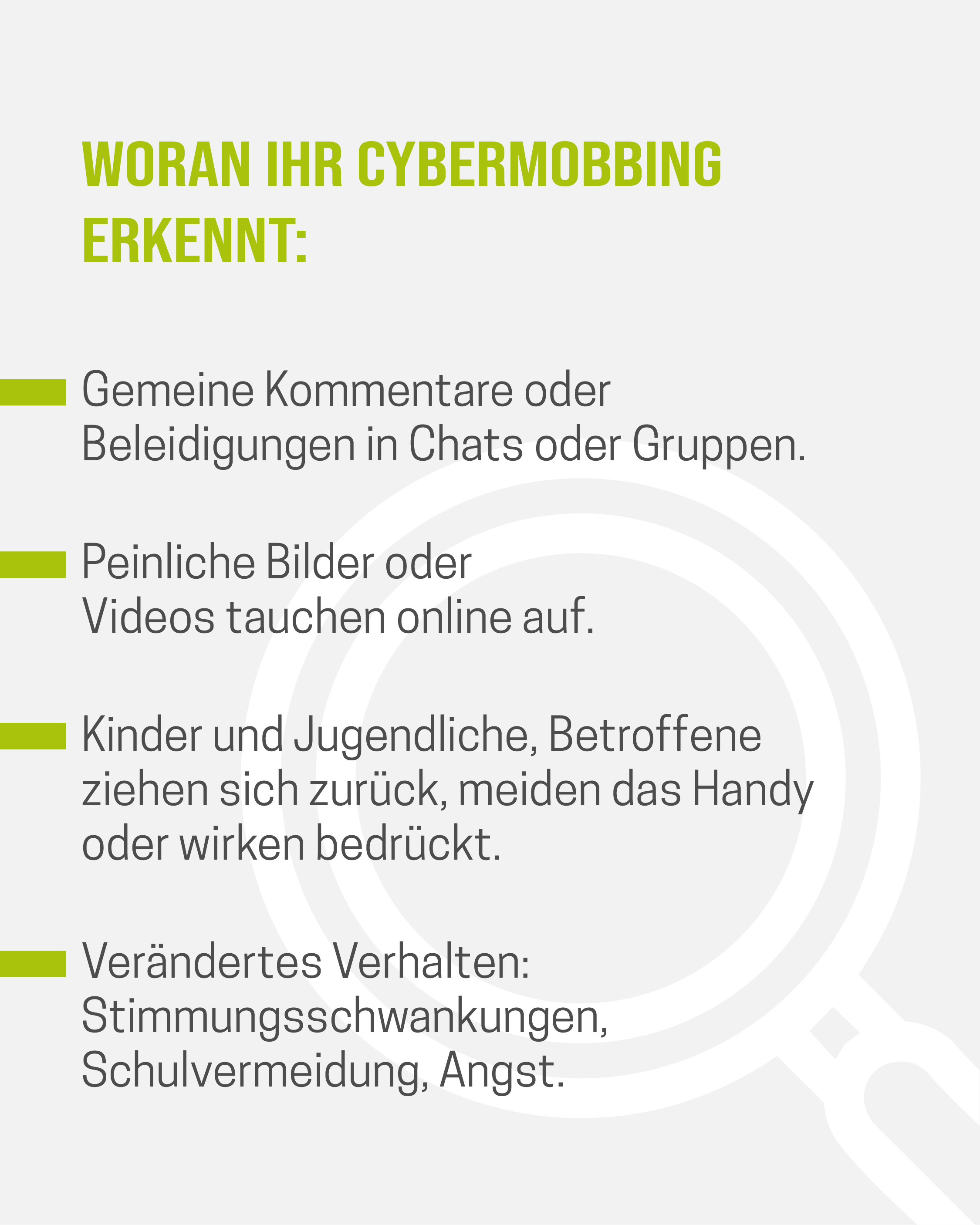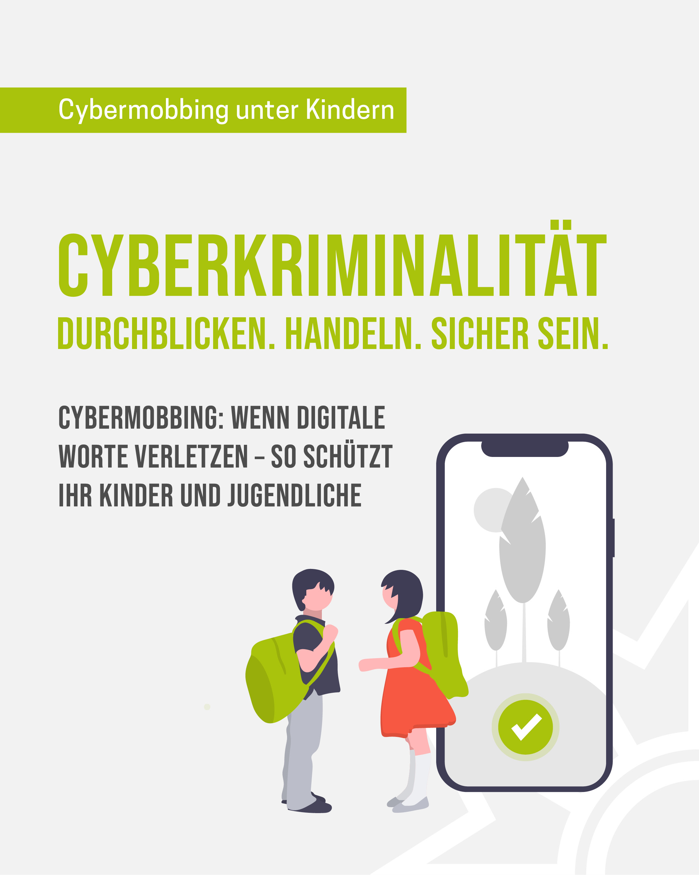 Das Medienpaket „Cybermobbing: Wenn digitale Worte verletzen“ ist eine thematische Zusammenstellung aus Bild- und/ oder Textpostings für die Social Media Kanäle Facebook, Instagram und X. Wir stellen Ihnen die Beiträge zur freien Verfügung bereit. Nutzen Sie diese selbst oder leiten Sie die Postings an Ihre zuständige Social Media Stelle weiter. Wie und ob Sie die Beiträge veröffentlichen, können Sie individuell entscheiden. Texte und Hashtags können Sie frei nutzen und für Ihre Anforderungen anpassen.