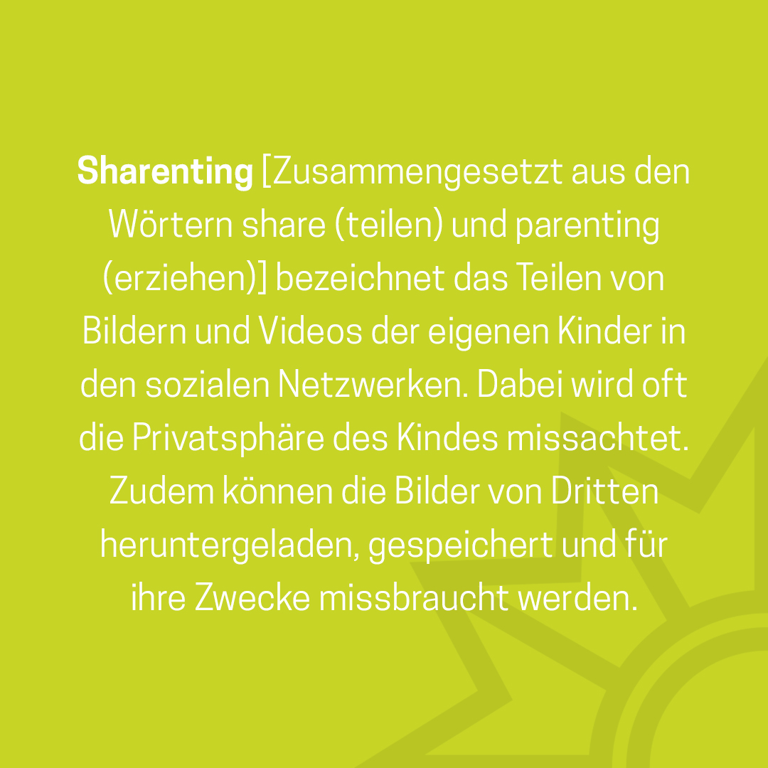 Das Medienpaket „Was bedeutet Sharenting?“ ist eine thematische Zusammenstellung aus Bild- und/ oder Textpostings für die Social Media Kanäle Facebook, Instagram und X. Wir stellen Ihnen die Beiträge zur freien Verfügung bereit. Nutzen Sie diese selbst oder leiten Sie die Postings an Ihre zuständige Social Media Stelle weiter. Wie und ob Sie die Beiträge veröffentlichen, können Sie individuell entscheiden. Texte und Hashtags können Sie frei nutzen und für Ihre Anforderungen anpassen.