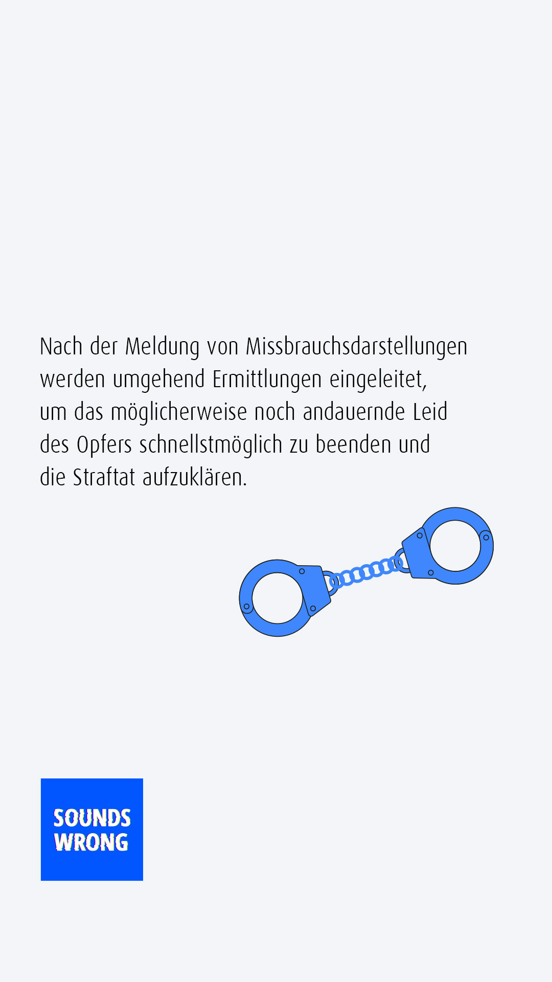 Das Medienpaket „Sounds Wrong: Erklärfilm Teil 5 - Meldung bei der Polizei“ ist eine thematische Zusammenstellung aus Bild- und/ oder Textpostings für die Social Media Kanäle Facebook, Instagram und X. Wir stellen Ihnen die Beiträge zur freien Verfügung bereit. Nutzen Sie diese selbst oder leiten Sie die Postings an Ihre zuständige Social Media Stelle weiter. Wie und ob Sie die Beiträge veröffentlichen, können Sie individuell entscheiden. Texte und Hashtags können Sie frei nutzen und für Ihre Anforderungen anpassen.