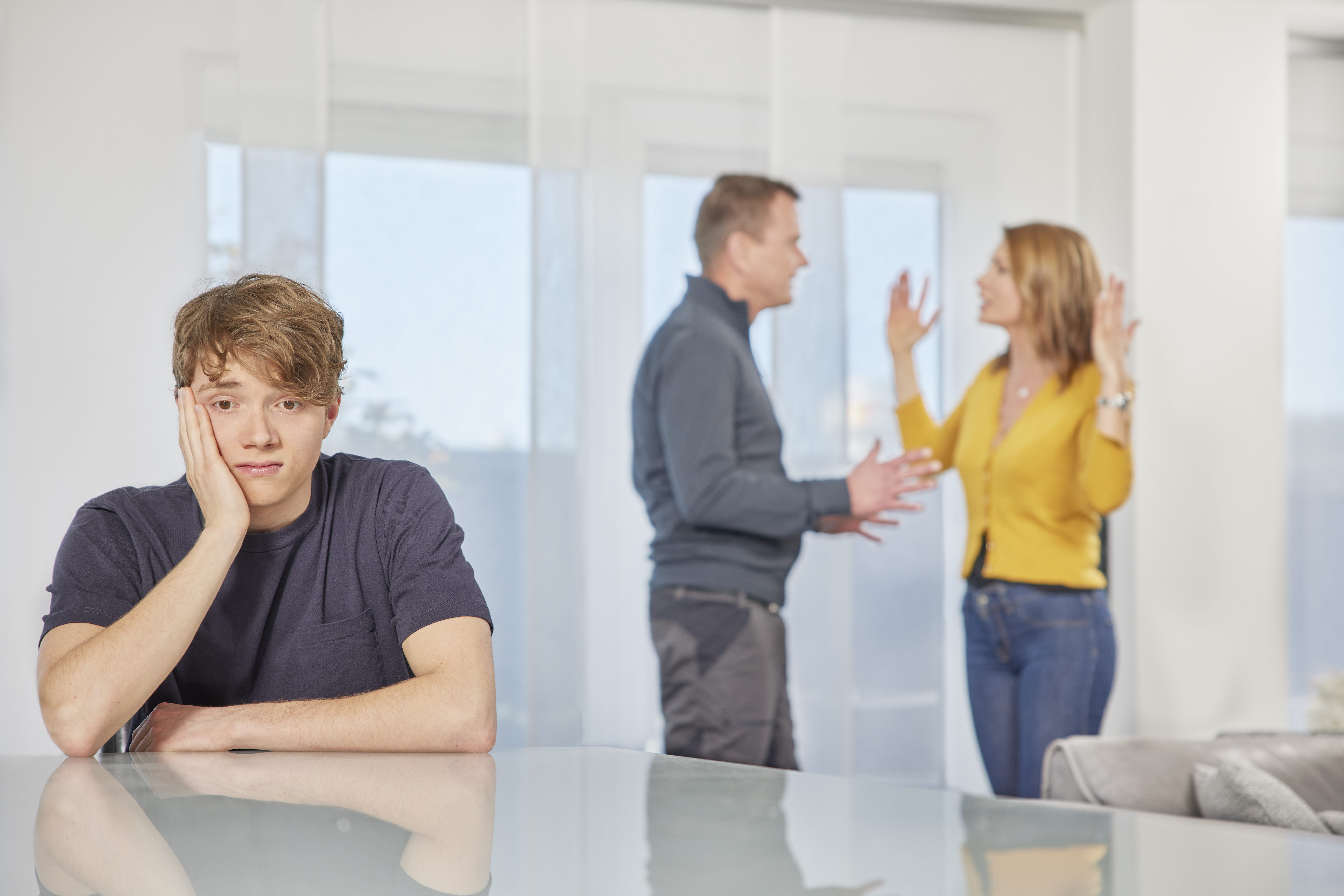 Opferschutz, Verzweiflung, Sohn, Teenager, Familie, Streit, zu Hause, Zuhause, Ehestreit, Frau, Jugendlicher, Mann, Opfer, Opferhilfe, Gewalt, Junge