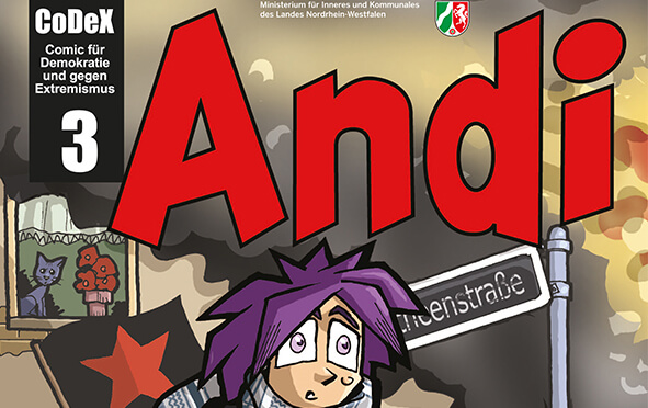 Um Jugendliche für das Thema Linksextremismus zu sensibilisieren hat der nordrhein-westfälische Verfassungsschutz den Comic „Andi“ für den Einsatz im Schulunterricht entwickelt. Im Rahmen der Handlung des Comics und auf zusätzlichen Informationsseiten werden verschiedene Aspekte des Linksextremismus einfach und verständlich erklärt, zum Beispiel das Gewaltmonopol des Staates oder das Demonstrationsrecht. Der Comic kann als kompletter Klassensatz bestellt werden. Angepasst an das Medienverhalten Heranwachsender gibt es den Comic mittlerweile auch als kostenlose App für Smartphones.